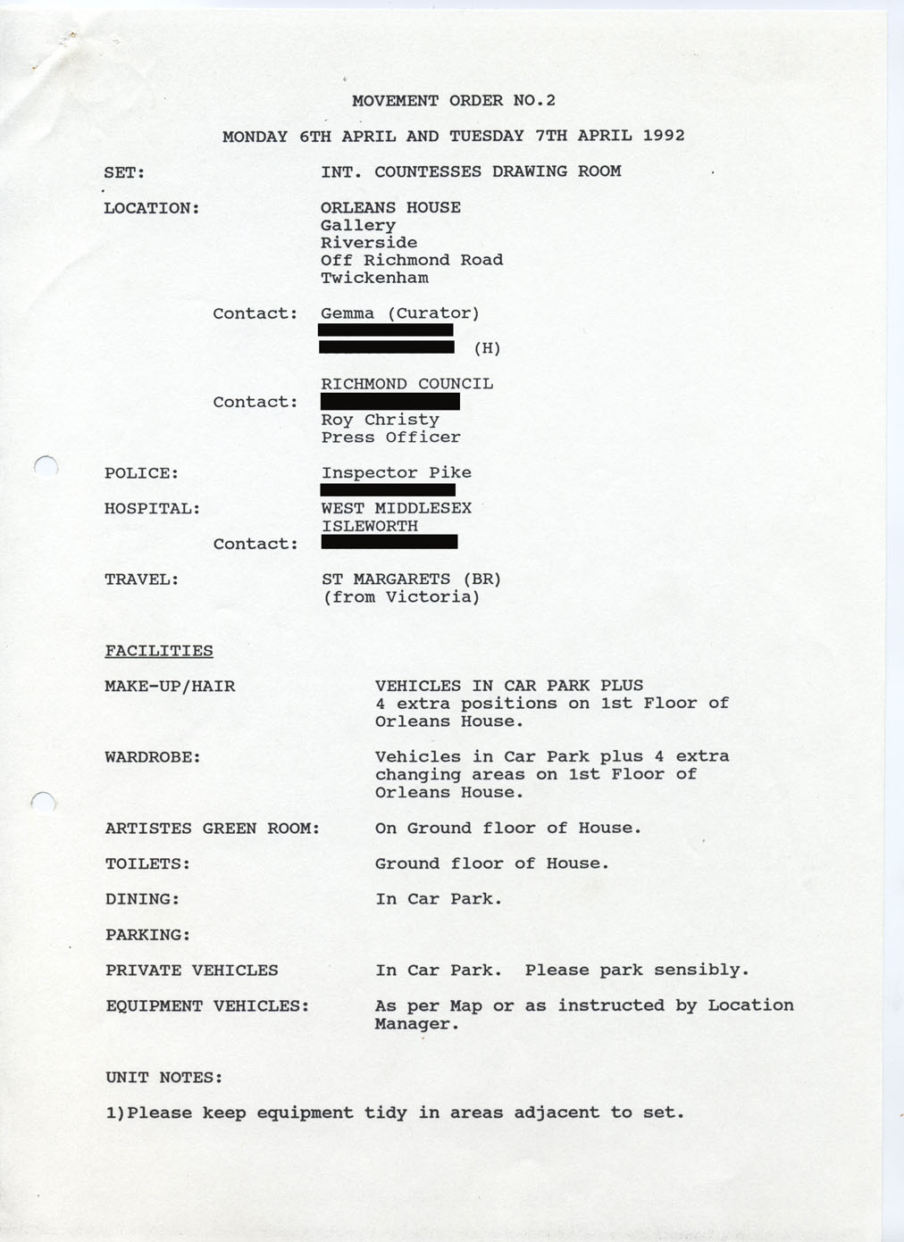 Description Movement Order No.2. Typed A4 Sheet.