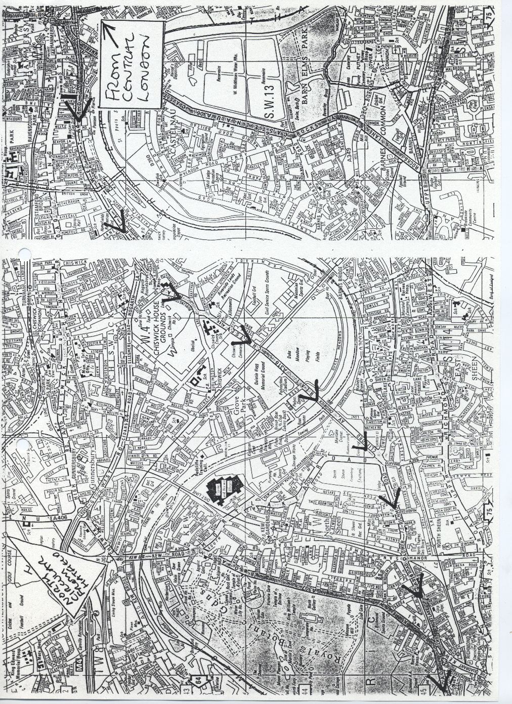 Description Printed map of Route to Orleans House location with handwritten annotations, page 1. Photocopied A4 sheet.