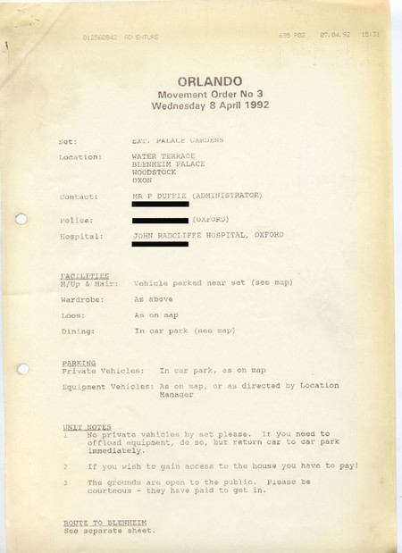 Description Second Movement Order No3. Typed A4 sheet. Faxed copy.