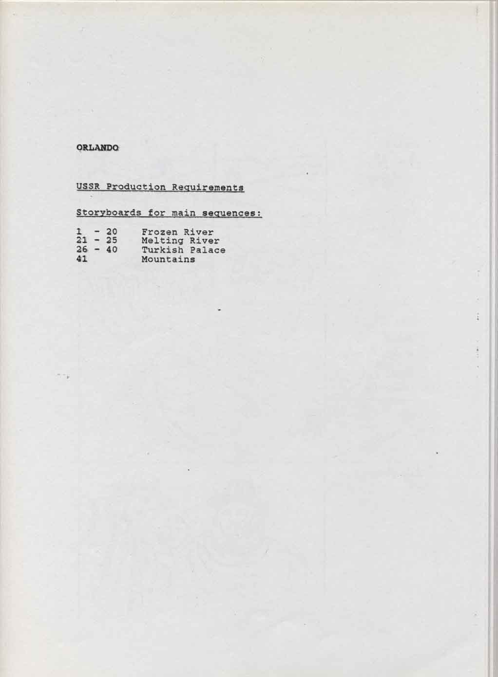 Description Title page for Main Sequence storyboards. Typed on white A4.