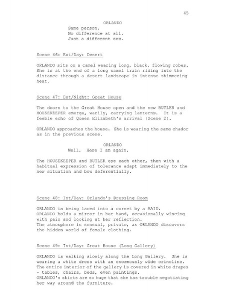 The adaptation of 'Orlando' from literature to novel, and how each type shows the transgression from male to female