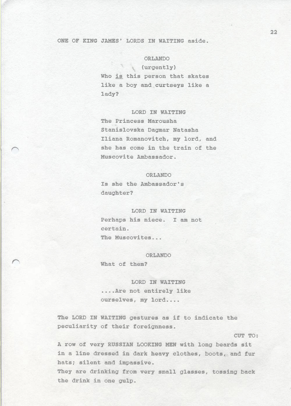 Description Black and white A4 computer printed, Paper, Revised draft of screenplay
