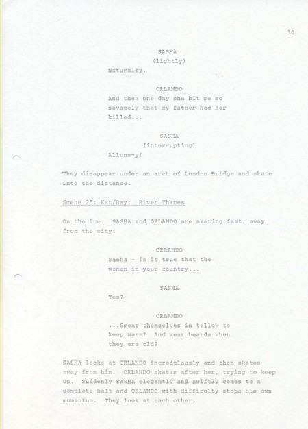 Description Black and white A4 computer printed, Paper, Revised draft of screenplay