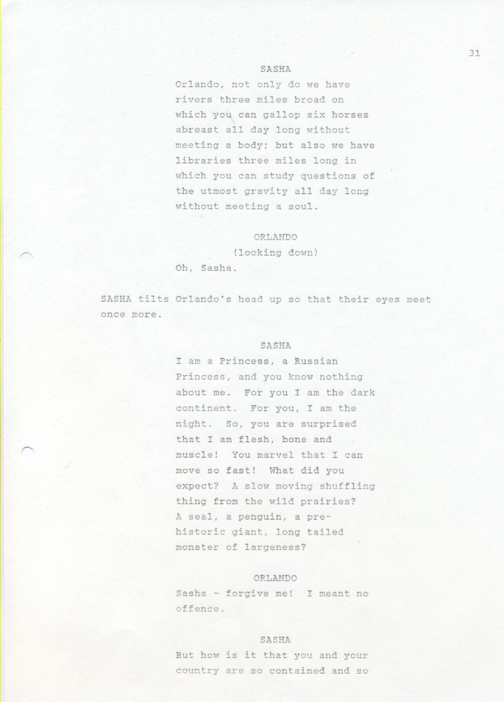 Description Black and white A4 computer printed, Paper, Revised draft of screenplay