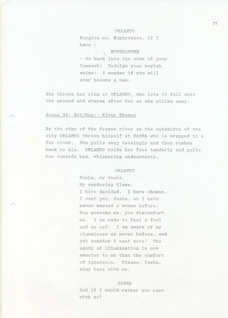 Description Black and white A4 computer printed, Paper, Revised draft of screenplay