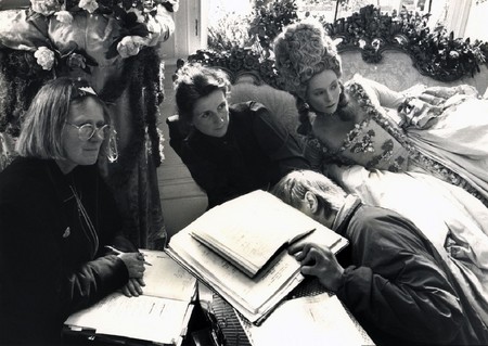 Description 1 x colour slide in transparent plastic hanging sheet, Digital, Behind the Scenes Images - Penny Eyles (Script Supervisor), Sally Potter and Tilda Swinton on location for Scene 51