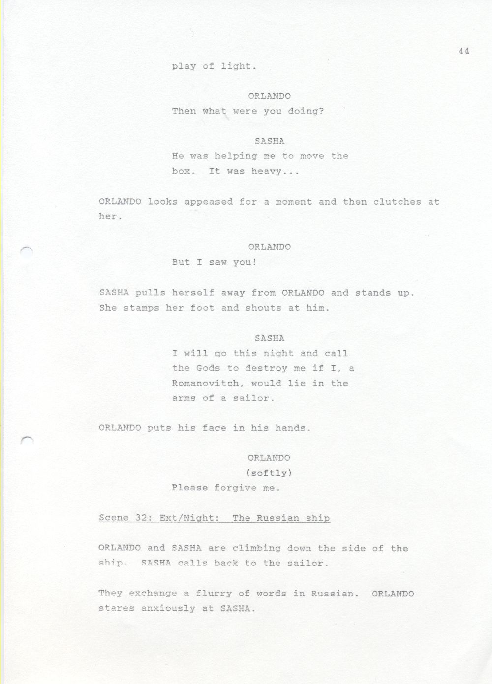 Description Black and white A4 computer printed, Paper, Revised draft of screenplay