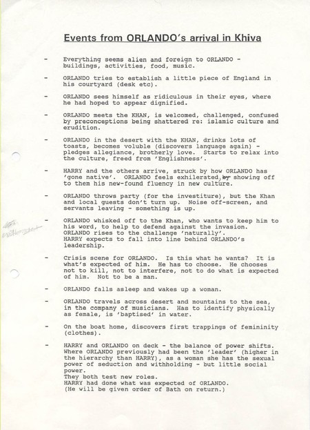 The stillness and restrictions that happen cinematically upon Orlando's gender transformation.