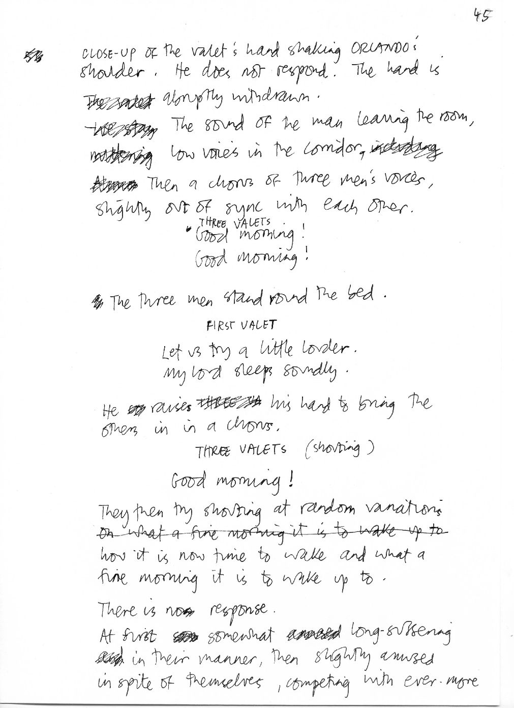Description Black and white, handwritten, Paper, Rough draft 1 of screenplay