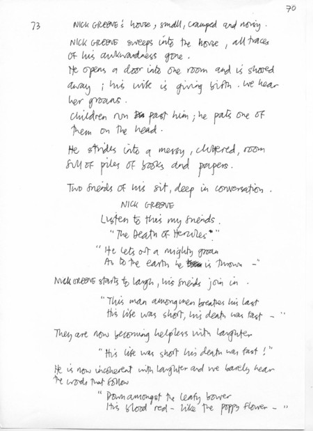 Description Black and white, handwritten, Paper, Rough draft 1 of screenplay