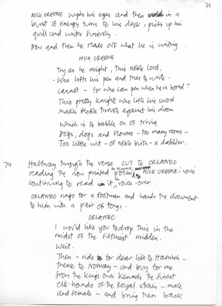 Description Black and white, handwritten, Paper, Rough draft 1 of screenplay