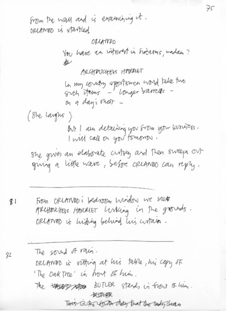 Description Black and white, handwritten, Paper, Rough draft 1 of screenplay