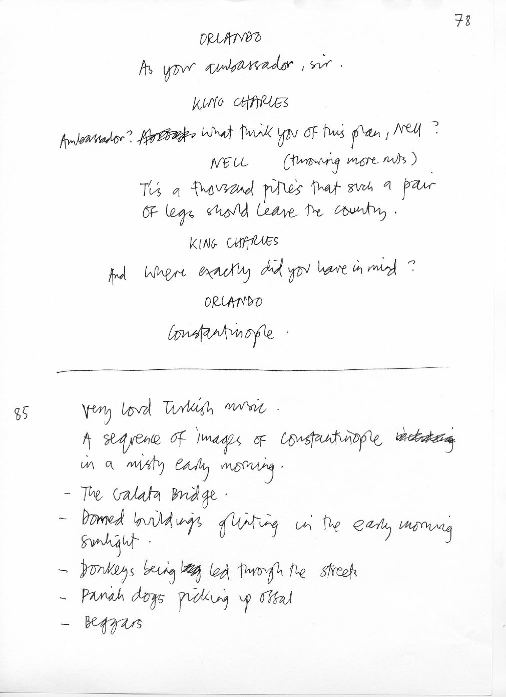 Description Black and white, handwritten, Paper, Rough draft 1 of screenplay