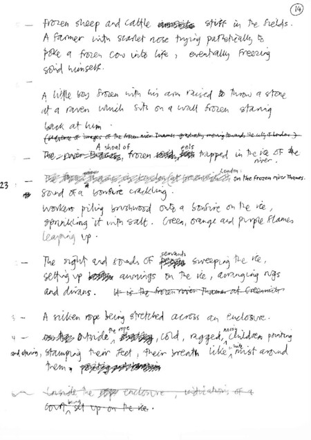 Description Black and white, handwritten, Paper, Rough draft 1 of screenplay