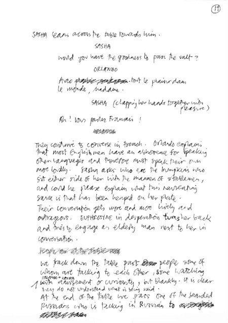 Description Black and white, handwritten, Paper, Rough draft 1 of screenplay