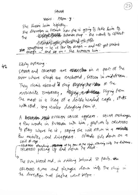Description Black and white, handwritten, Paper, Rough draft 1 of screenplay